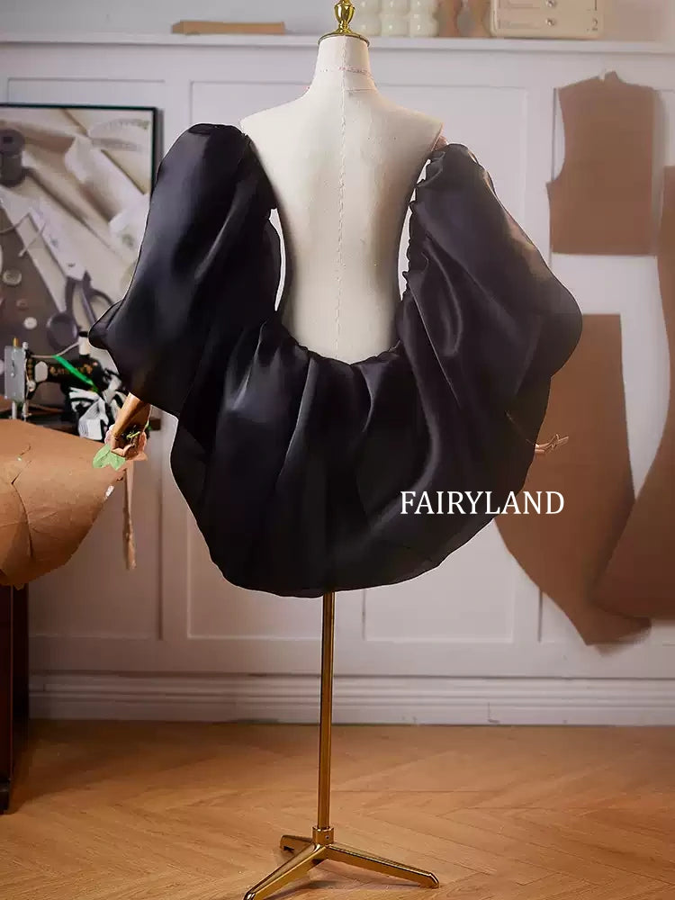 Make a bold fashion statement with these black satin puff sleeves, designed for modern elegance and drama. Crafted from luxurious satin fabric, the oversized puff shape adds instant volume and sophistication to any outfit. Whether styled with a minimalist gown, a couture dress, or for an editorial shoot, these sleeves embody confidence, power, and timeless glamour.