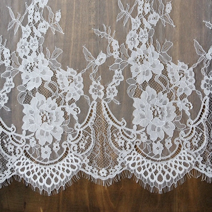 The intricate floral pattern and scalloped lace edges create a couture finish, perfect for church weddings, classic ceremonies, and luxury bridal portraits. Lightweight and breathable, they pair effortlessly with strapless, lace, or minimalist wedding gowns.