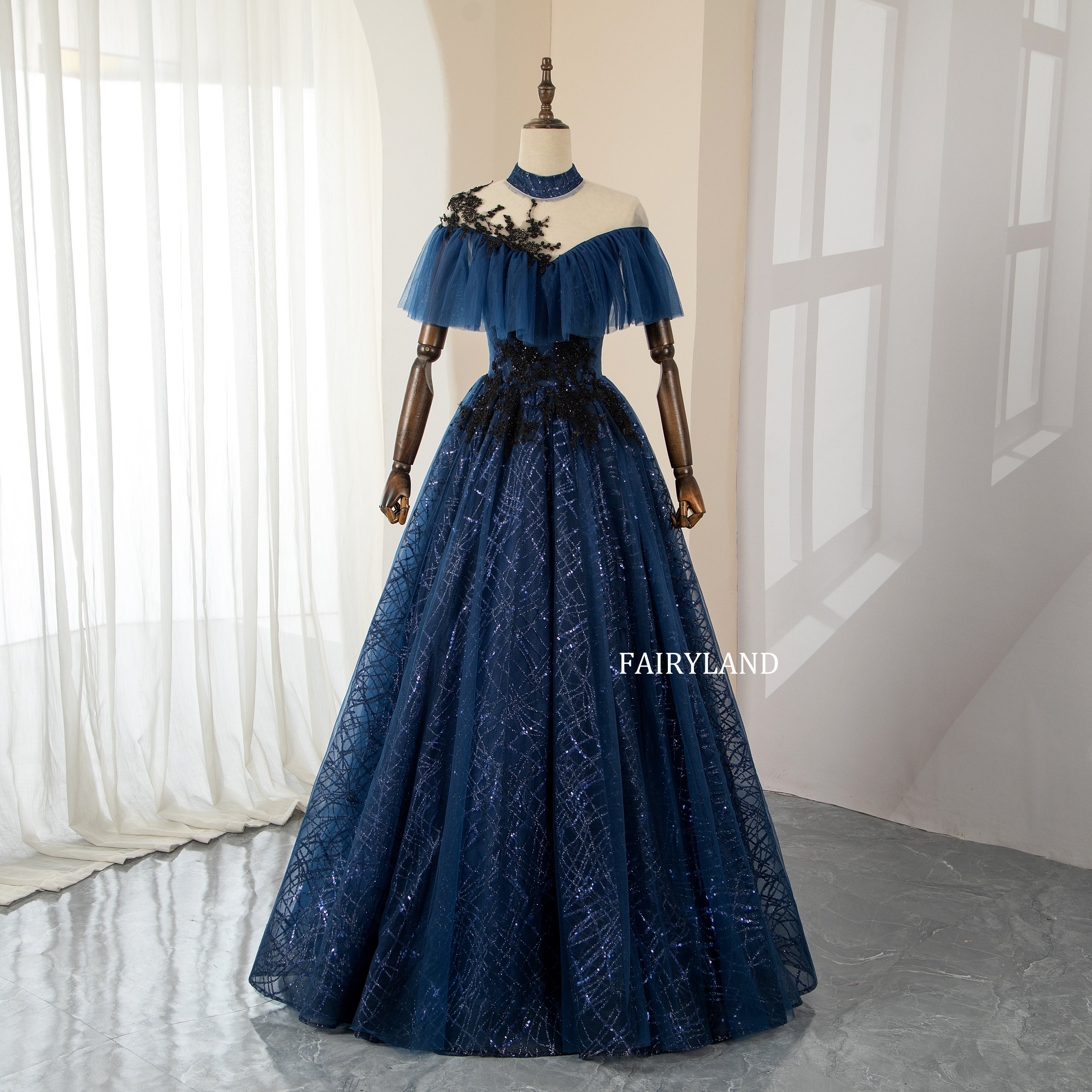 The rich navy blue hue adds a timeless and sophisticated touch, while the flowing skirt brings graceful movement with every step. Whether you're attending prom, a formal gala, or a special evening event, this dress guarantees a stunning entrance.