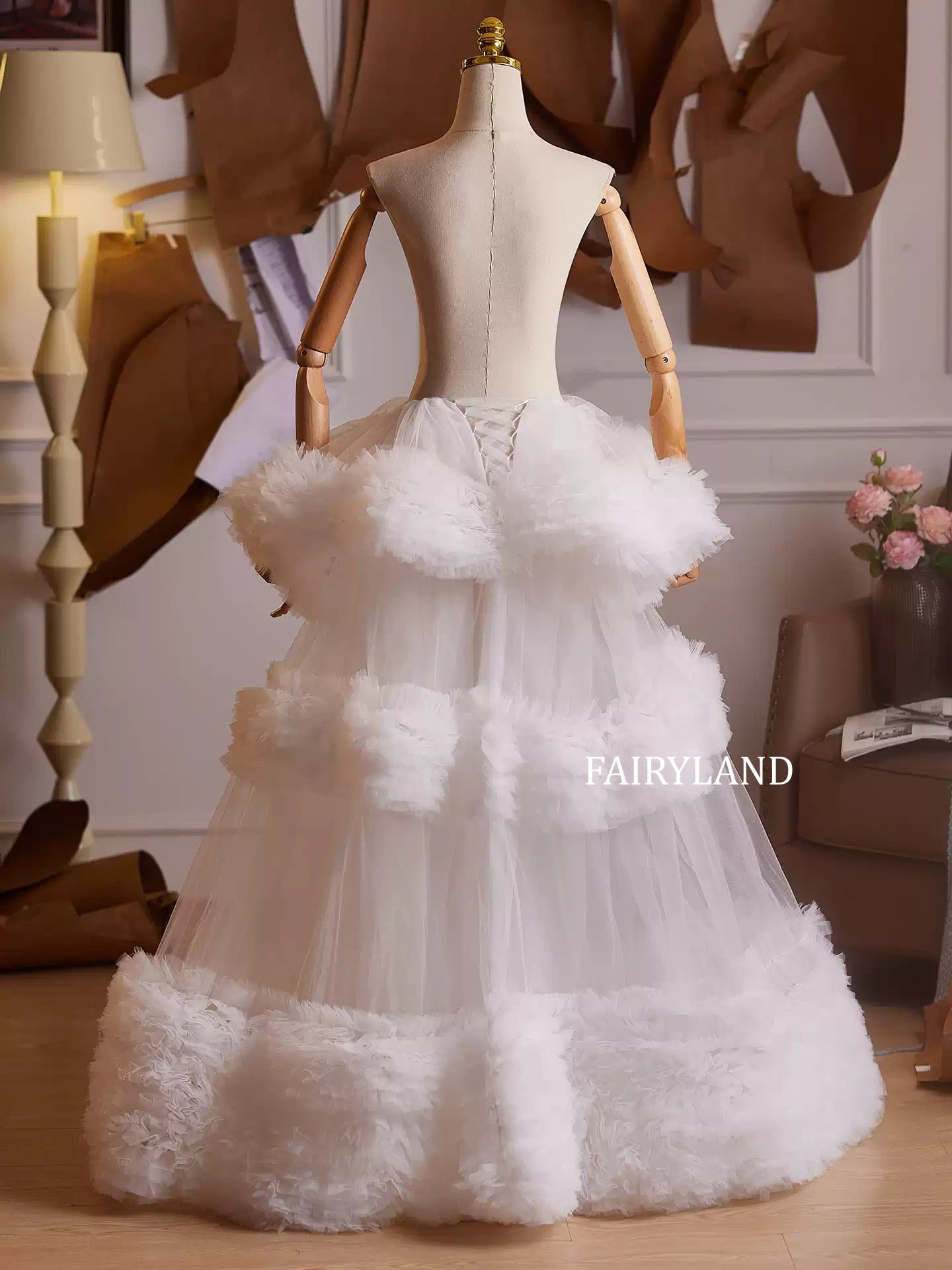 Elevate your bridal or editorial style with this Layered Puffy Tulle Skirt, a dreamy statement piece that blends elegance and avant-garde couture.