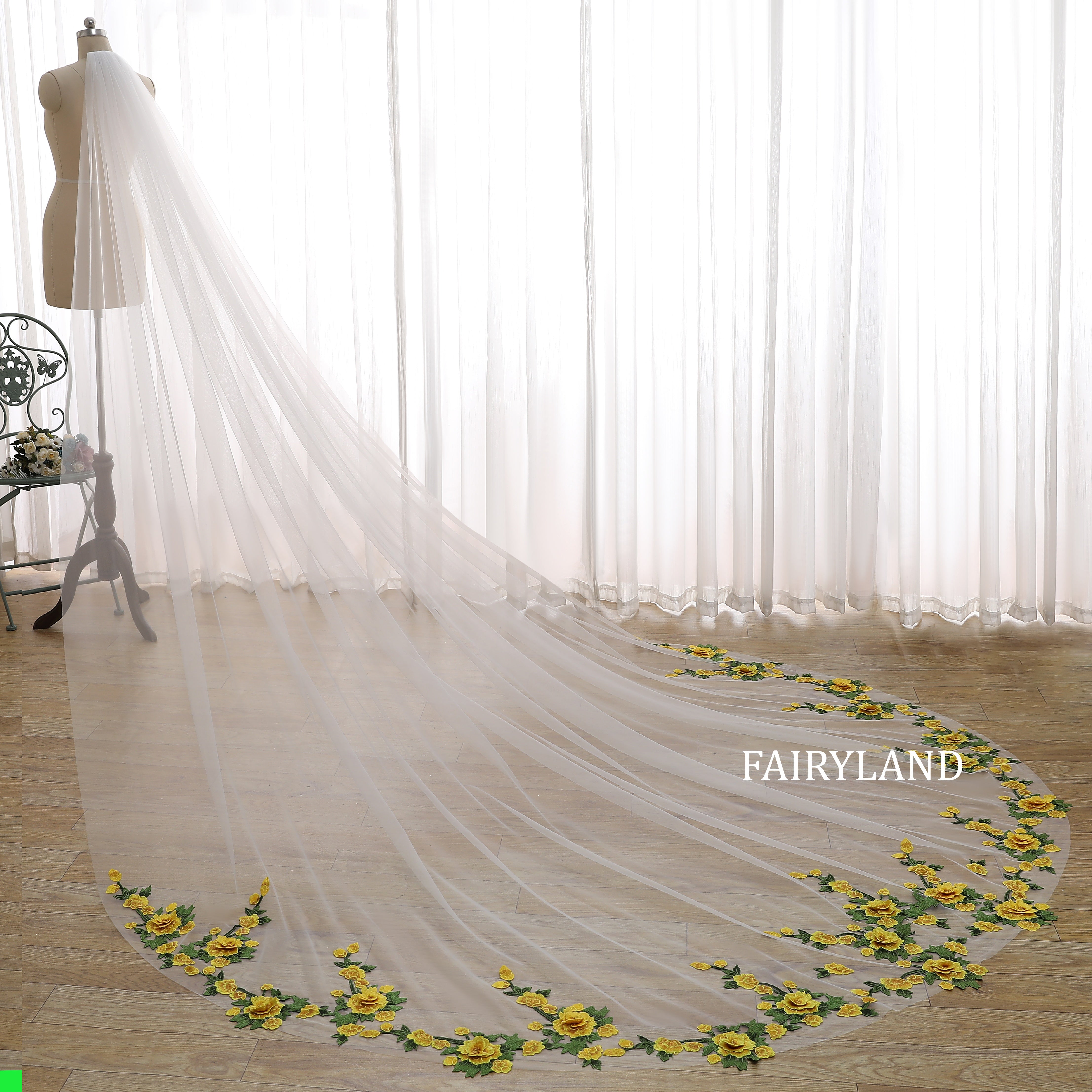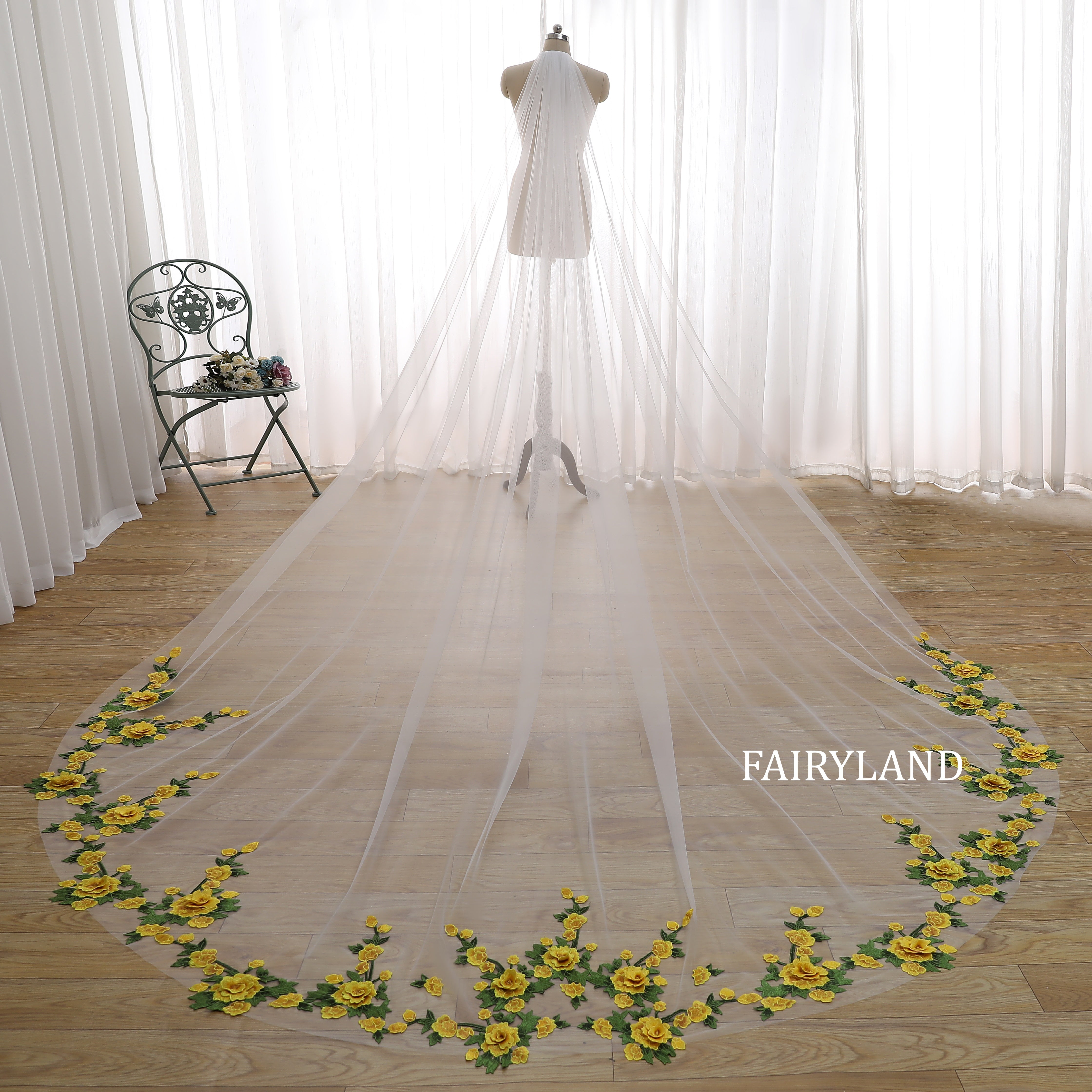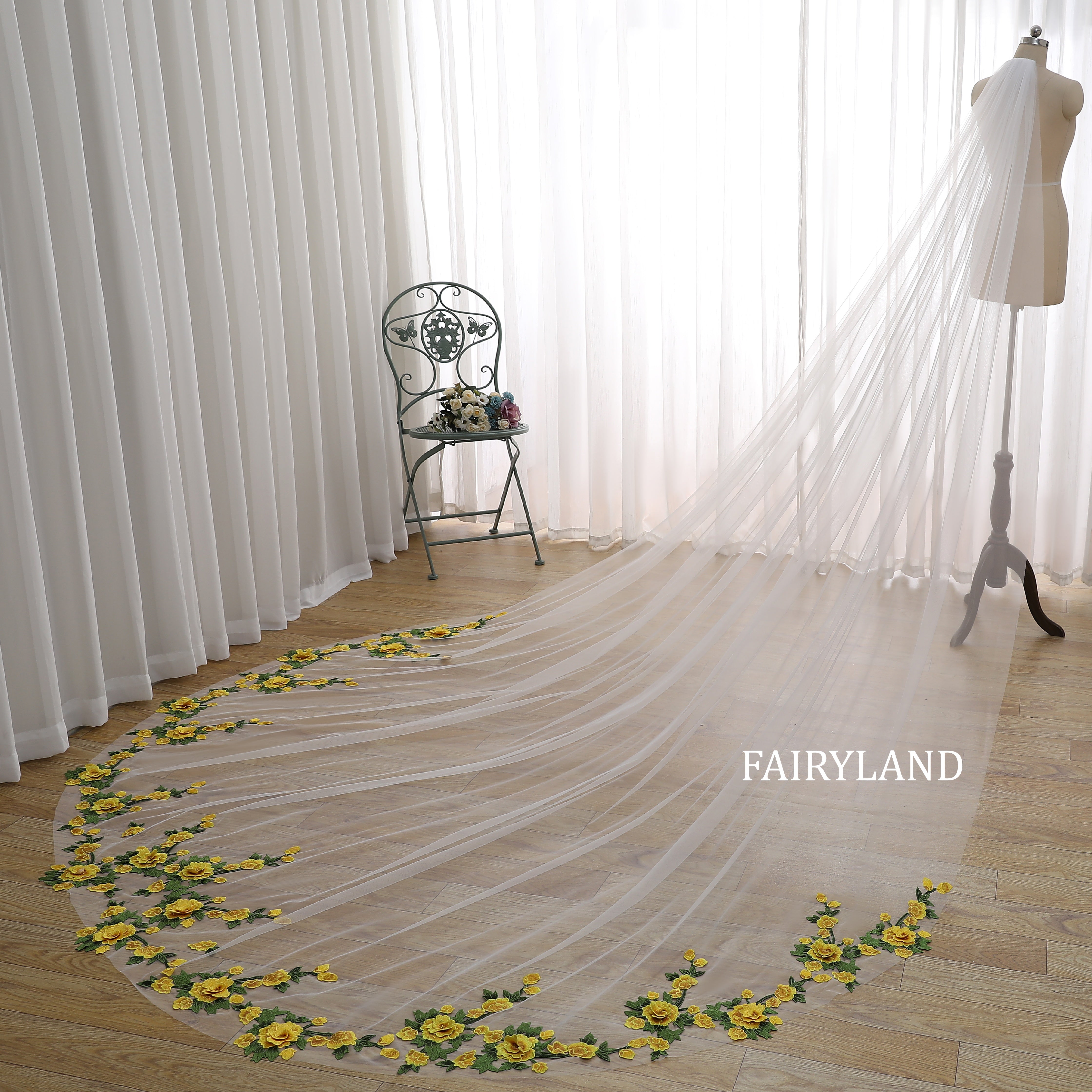 Bring a touch of sunshine and elegance to your wedding day with this breathtaking cathedral-length veil.