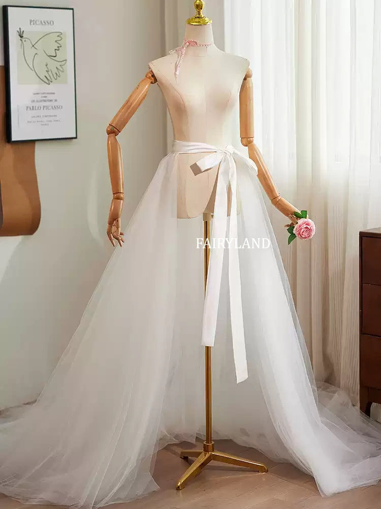 Detachable tulle overskirt with flowing long train